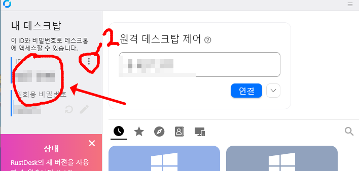 4. 만약 원격 접속을 못한다면 사진 속 2번 점 3개 클릭